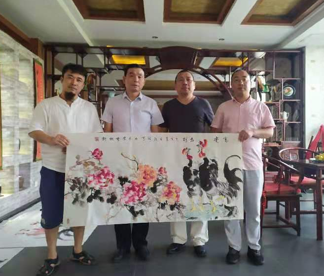 (▲陜西繼峰文化藝術(shù)有限公司董事長高繼鋒先生向代表團贈送畫作)